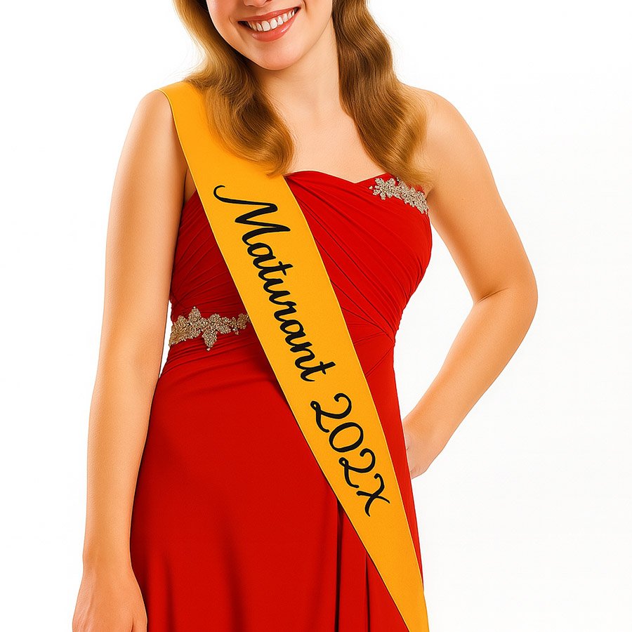 Oranžovo-žluté maturitní šerpy / absolventské šerpy / šerpy pro předškoláky / šerpy na rozlučku se svobodou vyrobené z taftové stuhy české výroby o šířce 10,8 cm a délce standardně 2 m (délka vhodná pro většinu maturantů a dospělých). Pro prostorově výraznější osoby můžete objednat šerpy v délce 2,2 nebo 2,4 m a nebo pro děti a předškoláky v délce 1,4 nebo 1,6 m, případně pro větší děti o délce 1,8 m.