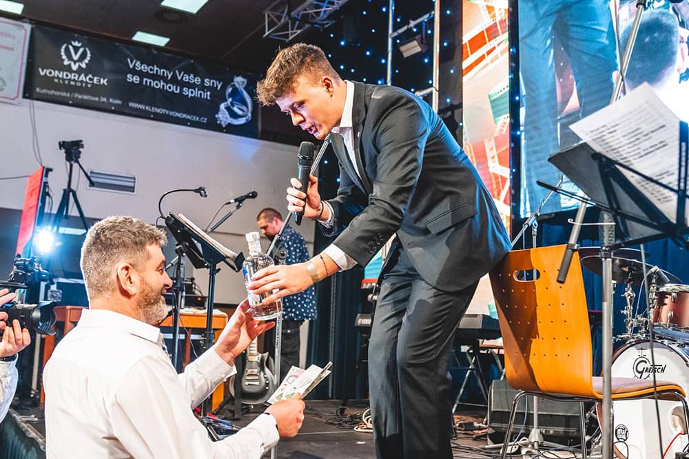 "Většinu akcí moderuji v nějakém zábavného obleku, podle tématiky, ale nejraději jsem v Pokémonech. Rád dělám show a miluju improvizaci. Dokážu být i seriózný a odmoderovat cokoliv budete chtít. Pokud chcete, abych byl toho součástí, určitě se mi ozvěte a budu se těšit!