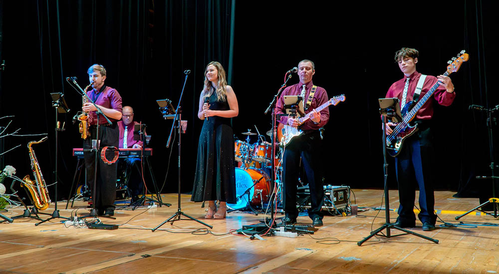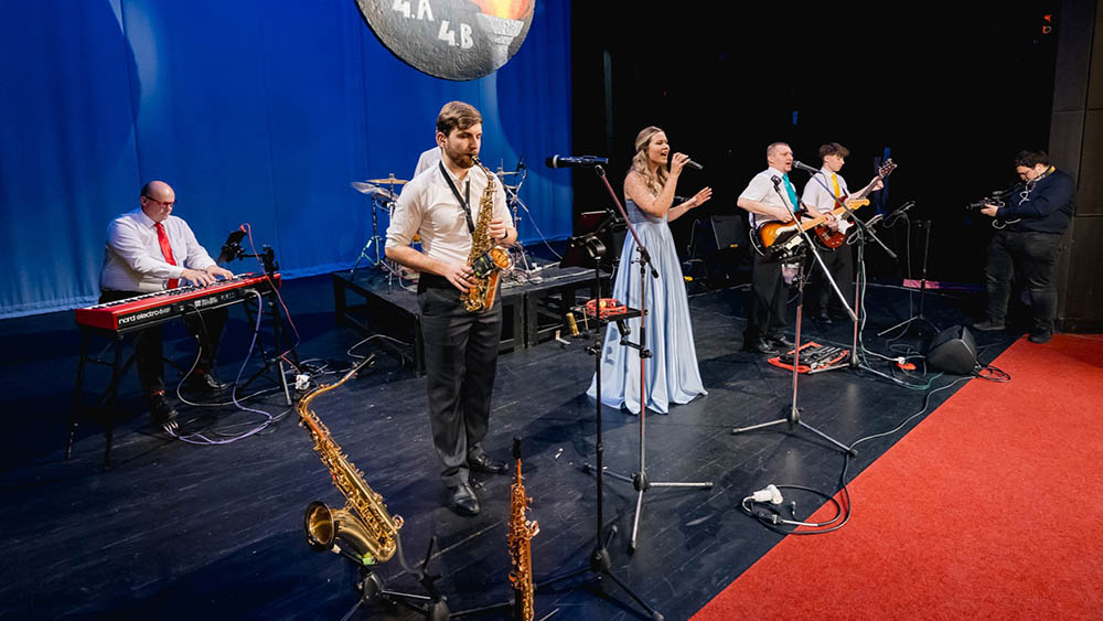Nabízíme složení 6 lidí (tj. klávesy, kytara, basa, bicí, saxofon, ženský zpěv) včetně ozvučení a světelných efektů.